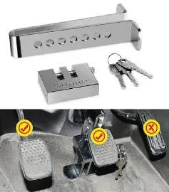 This Solid Safety Lock Car Stainless Steel Brake Lock is designed to enhance car security with a special 8-pair hole design for different pedal heights and a narrow gap to prevent cut tools from entering. Made of premium stainless steel, it offers exceptional durability and resistance to damage. It is easy to install, comes with 3 keys for convenience, and stands at a height of 225mm, which is taller than most models on the market.